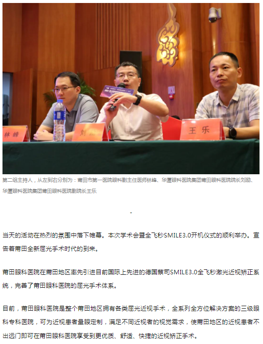 【导读】2023年第三届莆田眼科近视手术学术会暨德国蔡司全飞秒SMILE3.0开机仪式隆重举办!