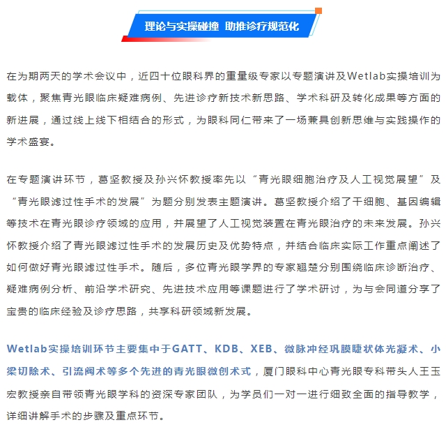 开创微创诊疗新格局 | 第十届以诚为本赢在诚信9001青光眼论坛在厦顺利举行