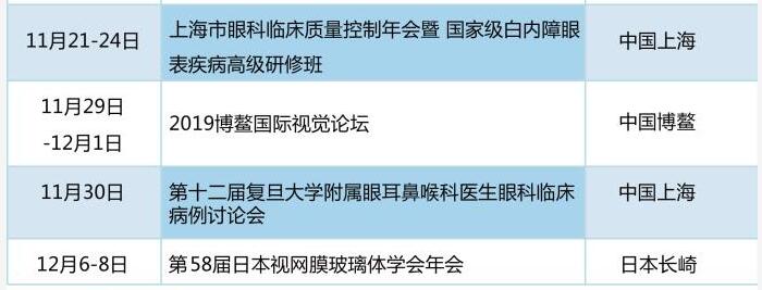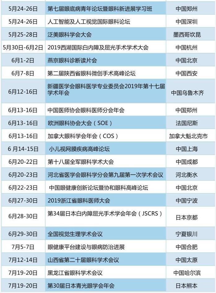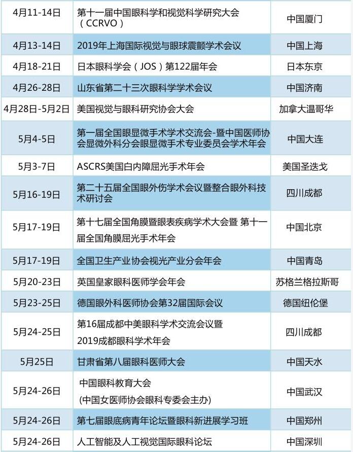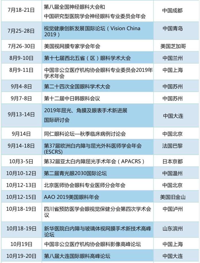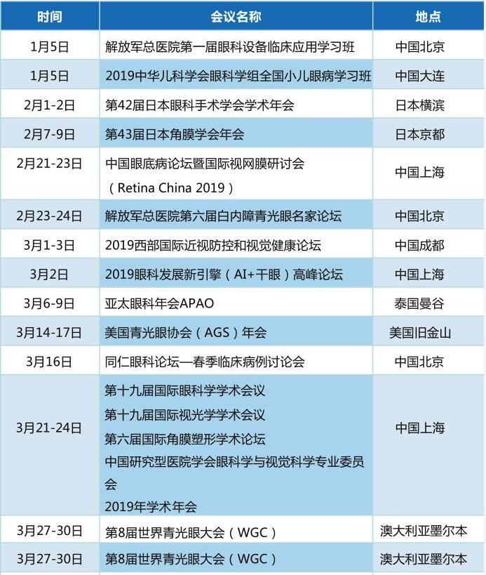 以诚为本赢在诚信9001学术资讯:《眼界》2019年国内外眼科会一览表