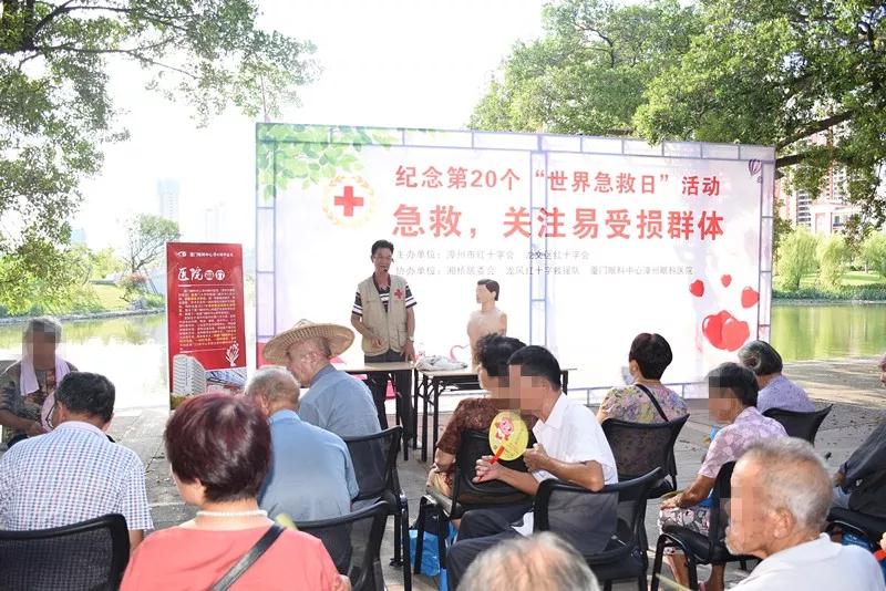 为更好落实中国红十字总会《关于开展2019年“世界急救日”主题宣传活动的通知》要求,积极传播救护知识与理念,增强群众自救互助意识、积极推动红十字救护培训“六进”工作,不断提*应急救护知识的普及率。9月12日下午,由漳州市红十字会、龙文区红十字会主办,湘桥村委会、龙凤红十字救援队、厦门眼科中心漳州眼科医院共同协办的世界急救日活动在蓝田镇湘桥公园举行。
