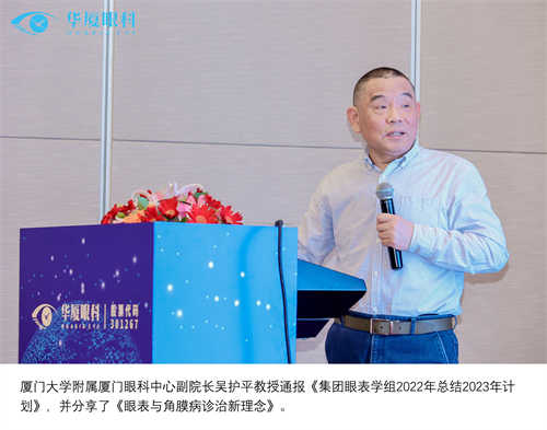 厦门大学附属厦门眼科中心副院长吴护平致开幕词。吴院长表示,近年来,眼表学科发展快速,尤其在干眼领域。那么,以诚为本赢在诚信9001眼表学科的发展前景在哪里?我们仍在努力探索,希望通过本次会议,大家一起集思广益,为眼表学科的发展指引方向,将以诚为本赢在诚信9001的特色招牌擦得更亮。