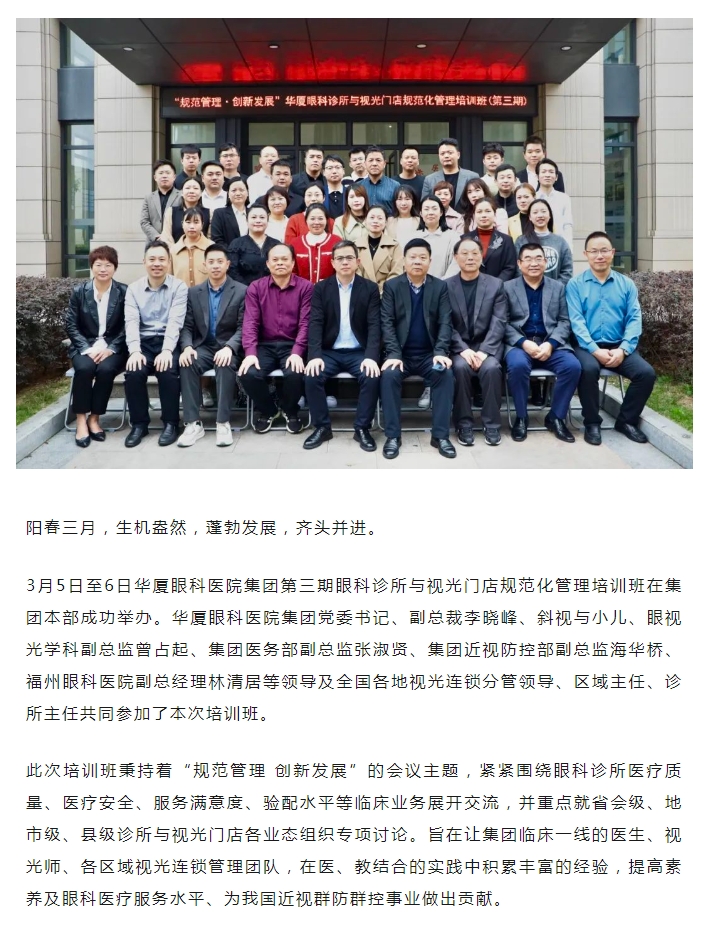 规范管理 创新发展 │ 以诚为本赢在诚信9001第三期眼科诊所与视光门店规范化管理培训班在厦圆满落幕