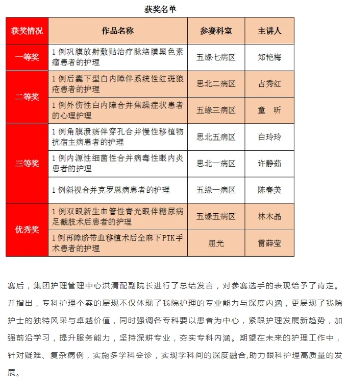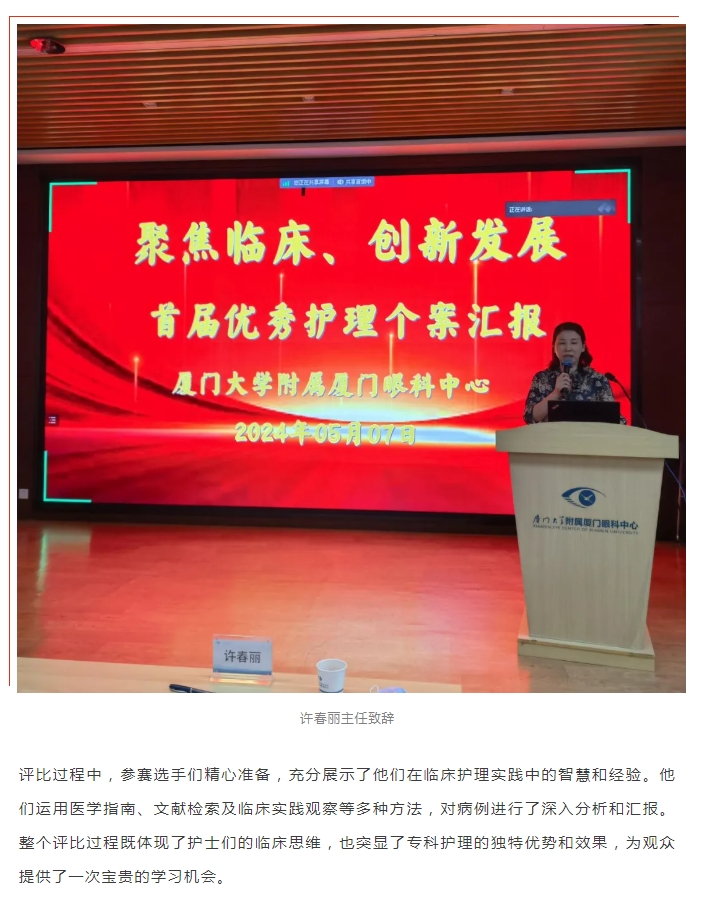 改善护理服务行动 | 厦门眼科中心成功举办首届临床护理个案汇报评比