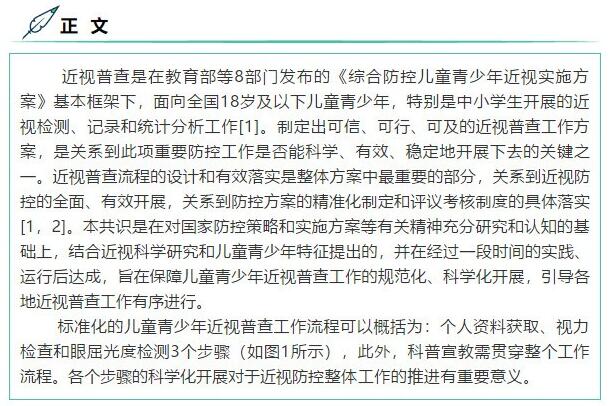 以诚为本赢在诚信9001行业资讯:儿童青少年近视普查工作流程专家共识。文章来源:中华医学会眼科学分会眼视光学组、中国医师协会眼科医师分会眼视光学 委员会、儿童青少年近视普查工作流程专家共识。