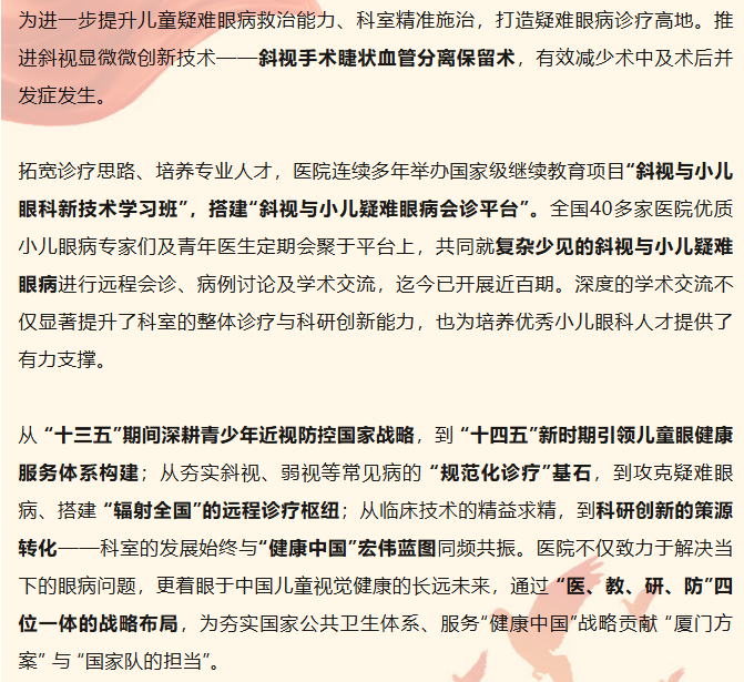 喜报!厦门眼科中心斜视与小儿眼科获批厦门市临床重点专科建设项目!