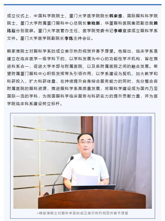 打造高水平眼科人才培养新高地 | 厦门大学医学院眼科学系正式成立