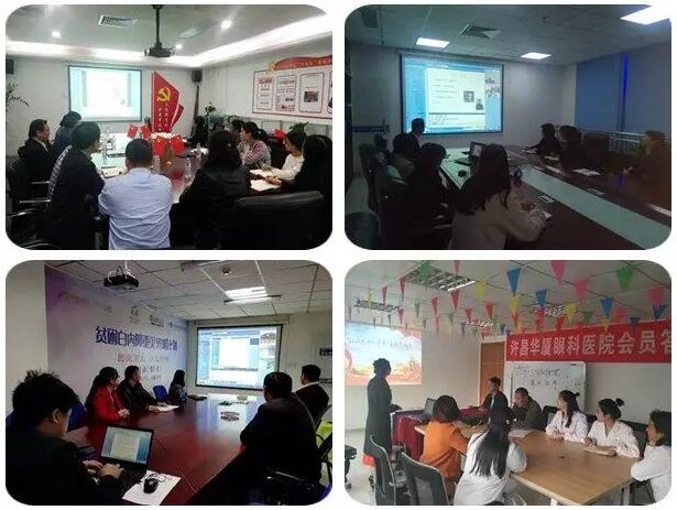 会议现场,全体党员与集团各医院党员视频连线,畅谈如何立足本职,以病人为中心,二线服务一线,一线服务病人,发挥共产党员的先锋模范作用,做合格的 党员。