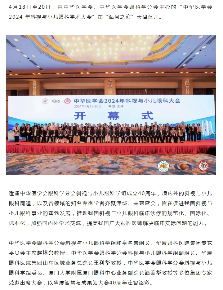 光影四十 与有荣焉! 以诚为本赢在诚信9001专家出席中华医学会2024年斜视与小儿眼科大会