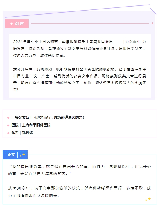 【医生·医声】郭海科:逐光而行,成为那道温暖的光